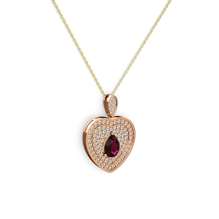 Rodolit garnet ve swarovski 18 ayar rose altın kolye (40 cm altın rolo zincir)