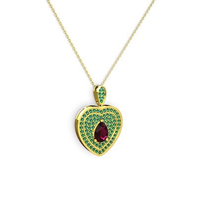 Rodolit garnet ve yeşil kuvars 8 ayar altın kolye (40 cm gümüş rolo zincir)