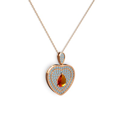 Sitrin ve akuamarin 8 ayar rose altın kolye (40 cm rose altın rolo zincir)