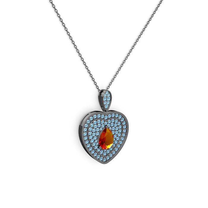 Sitrin ve akuamarin 925 ayar siyah rodyum kaplama gümüş kolye (40 cm gümüş rolo zincir)