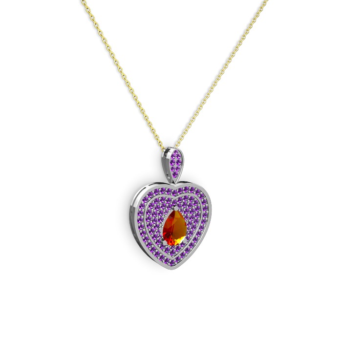 Sitrin ve ametist 8 ayar beyaz altın kolye (40 cm altın rolo zincir)
