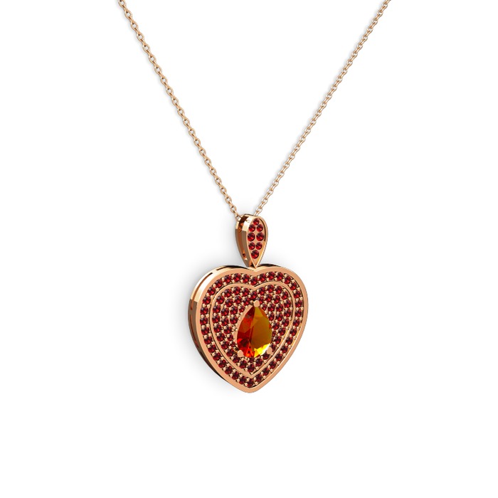 Sitrin ve garnet 18 ayar rose altın kolye (40 cm gümüş rolo zincir)