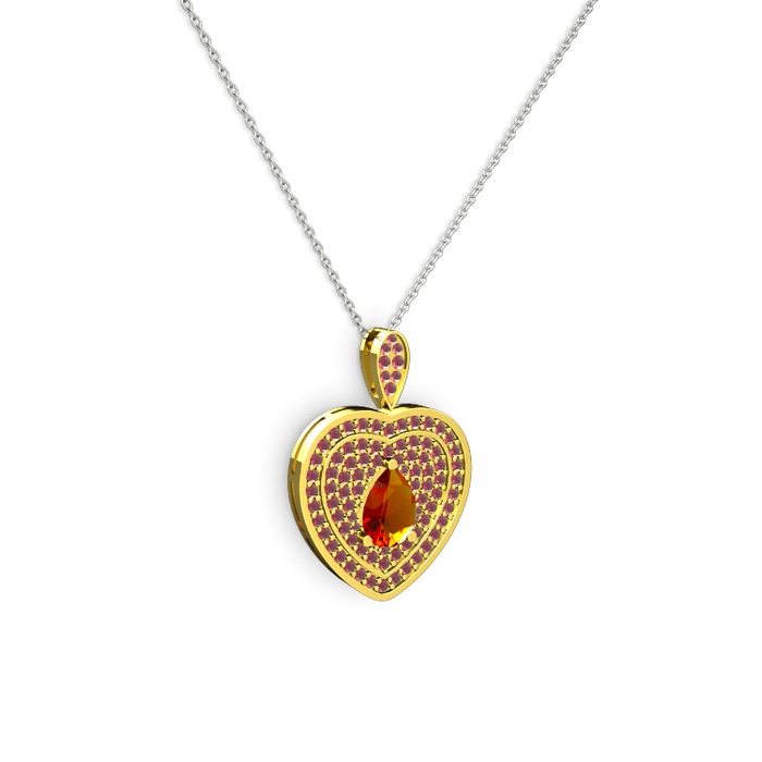 Sitrin ve kök yakut 8 ayar altın kolye (40 cm beyaz altın rolo zincir)