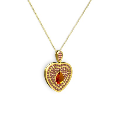Sitrin ve kök yakut 925 ayar altın kaplama gümüş kolye (40 cm altın rolo zincir)