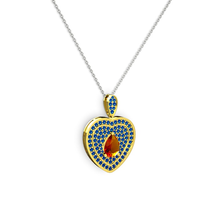 Sitrin ve lab safir 18 ayar altın kolye (40 cm gümüş rolo zincir)