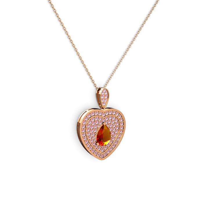 Sitrin ve pembe kuvars 8 ayar rose altın kolye (40 cm gümüş rolo zincir)