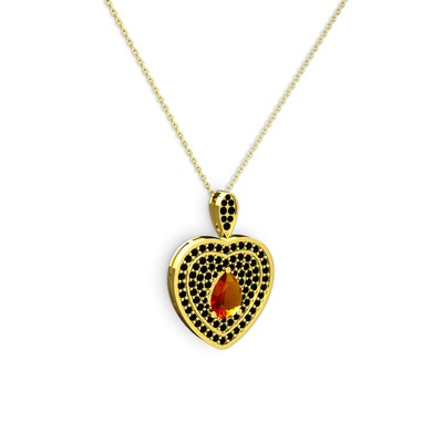 Sitrin ve siyah zirkon 18 ayar altın kolye (40 cm altın rolo zincir)
