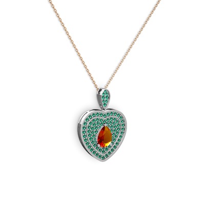 Sitrin ve yeşil kuvars 925 ayar gümüş kolye (40 cm rose altın rolo zincir)