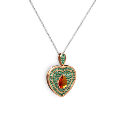 Sitrin ve yeşil kuvars 925 ayar rose altın kaplama gümüş kolye (40 cm beyaz altın rolo zincir)