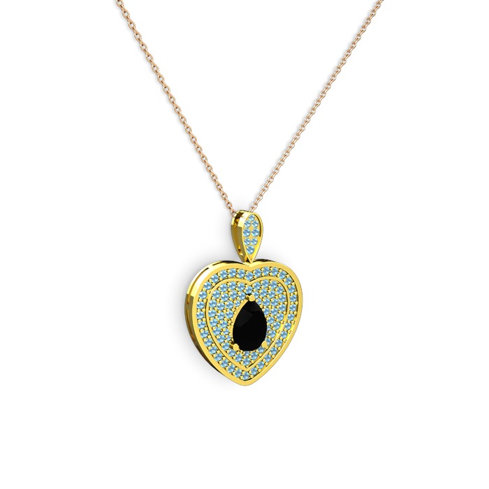 Siyah zirkon ve akuamarin 14 ayar altın kolye (40 cm rose altın rolo zincir)