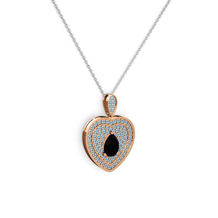 Siyah zirkon ve akuamarin 925 ayar rose altın kaplama gümüş kolye (40 cm gümüş rolo zincir)