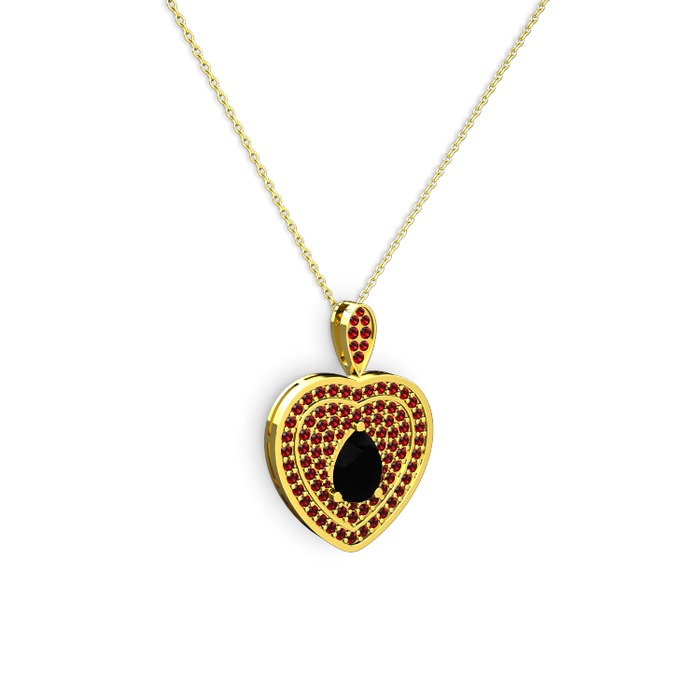 Siyah zirkon ve garnet 8 ayar altın kolye (40 cm altın rolo zincir)