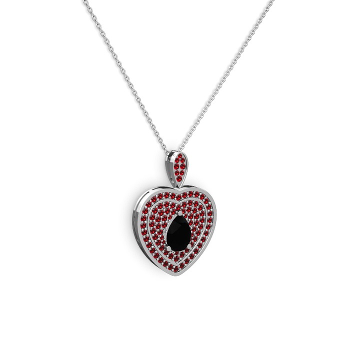 Siyah zirkon ve garnet 8 ayar beyaz altın kolye (40 cm beyaz altın rolo zincir)