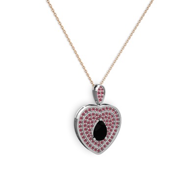 Siyah zirkon ve kök yakut 14 ayar beyaz altın kolye (40 cm gümüş rolo zincir)