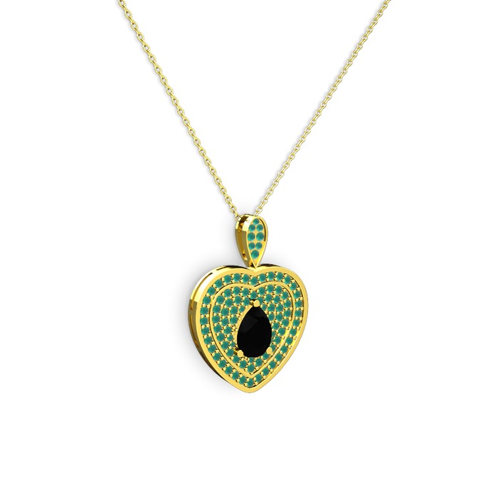 Siyah zirkon ve kök zümrüt 8 ayar altın kolye (40 cm altın rolo zincir)