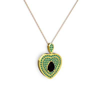 Siyah zirkon ve kök zümrüt 8 ayar altın kolye (40 cm rose altın rolo zincir)