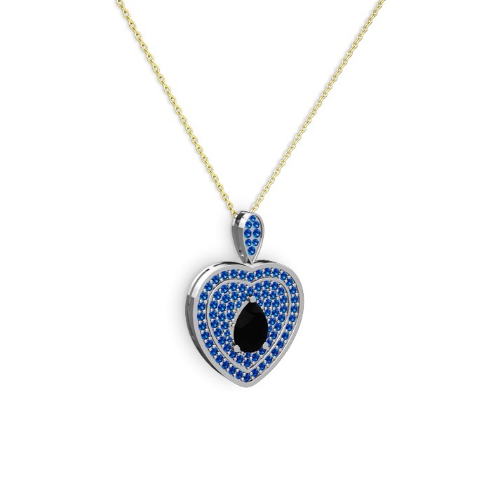 Siyah zirkon ve lab safir 8 ayar beyaz altın kolye (40 cm gümüş rolo zincir)