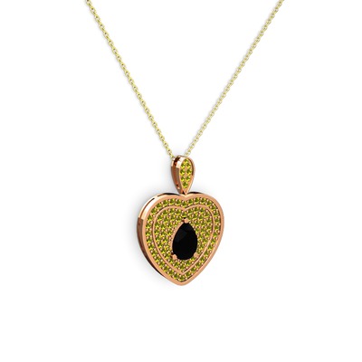 Siyah zirkon ve peridot 14 ayar rose altın kolye (40 cm altın rolo zincir)