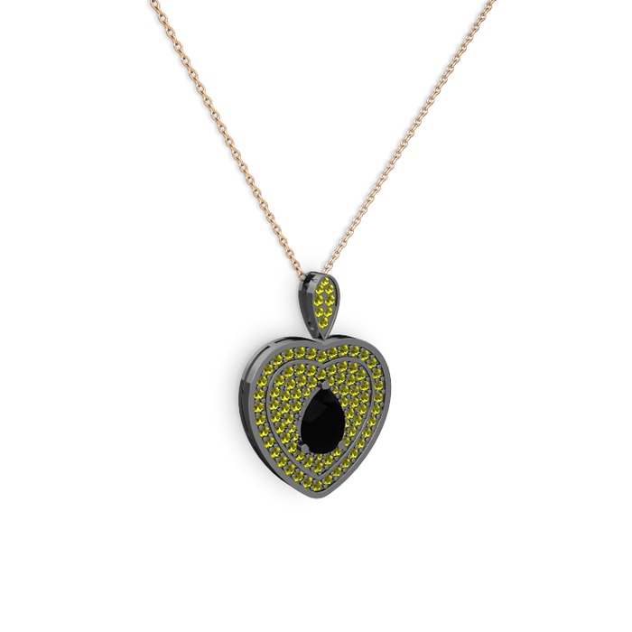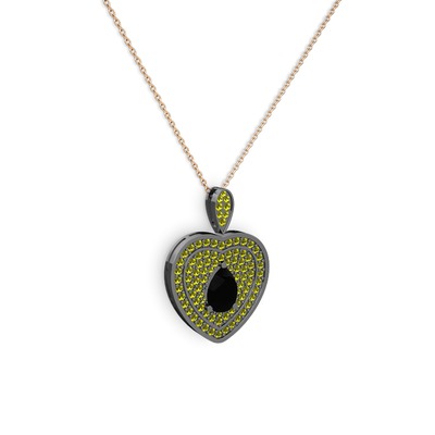 Siyah zirkon ve peridot 925 ayar siyah rodyum kaplama gümüş kolye (40 cm gümüş rolo zincir)
