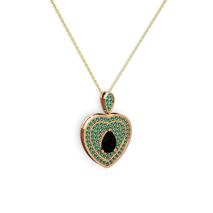 Siyah zirkon ve yeşil kuvars 18 ayar rose altın kolye (40 cm altın rolo zincir)