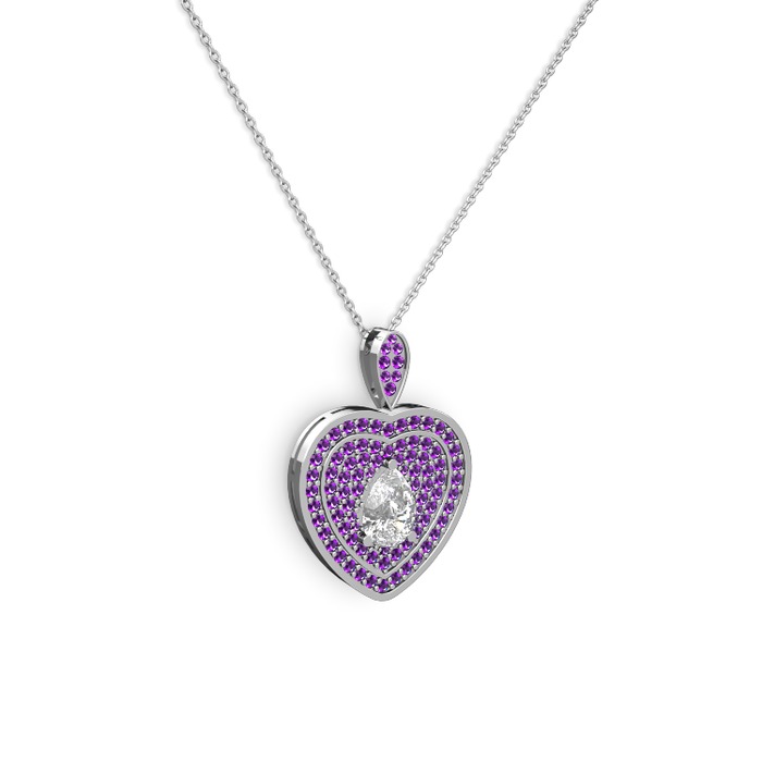 Swarovski ve ametist 925 ayar gümüş kolye (40 cm gümüş rolo zincir)