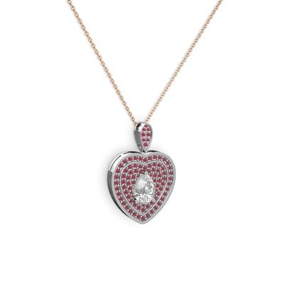 Swarovski ve kök yakut 925 ayar gümüş kolye (40 cm rose altın rolo zincir)