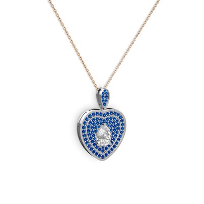 Swarovski ve lab safir 8 ayar beyaz altın kolye (40 cm rose altın rolo zincir)