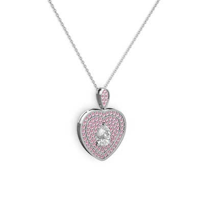 Swarovski ve pembe kuvars 925 ayar gümüş kolye (40 cm beyaz altın rolo zincir)