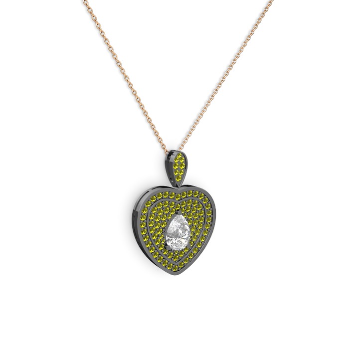Swarovski ve peridot 925 ayar siyah rodyum kaplama gümüş kolye (40 cm gümüş rolo zincir)