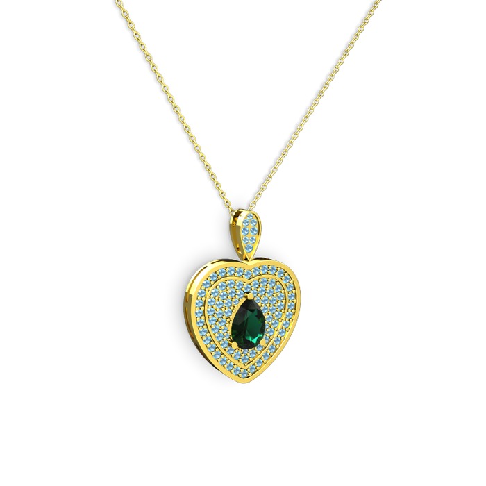 Yeşil kuvars ve akuamarin 18 ayar altın kolye (40 cm altın rolo zincir)