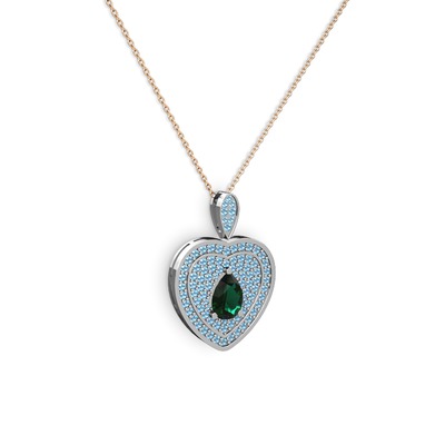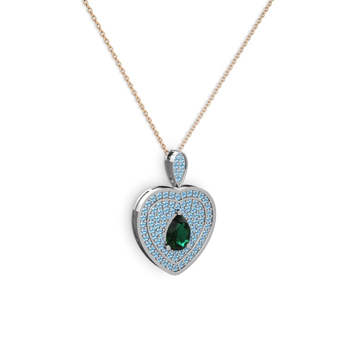 Yeşil kuvars ve akuamarin 18 ayar beyaz altın kolye (40 cm rose altın rolo zincir)