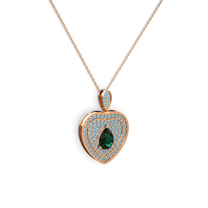 Yeşil kuvars ve akuamarin 18 ayar rose altın kolye (40 cm gümüş rolo zincir)