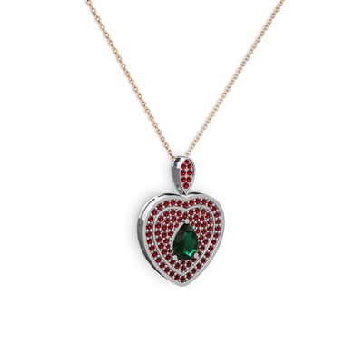Yeşil kuvars ve garnet 14 ayar beyaz altın kolye (40 cm gümüş rolo zincir)