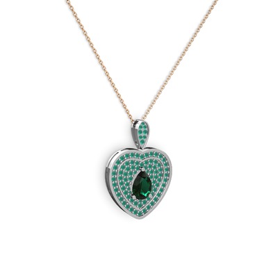 Yeşil kuvars ve kök zümrüt 14 ayar beyaz altın kolye (40 cm gümüş rolo zincir)