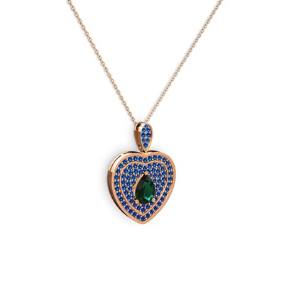 Yeşil kuvars ve lab safir 925 ayar rose altın kaplama gümüş kolye (40 cm gümüş rolo zincir)