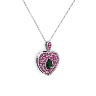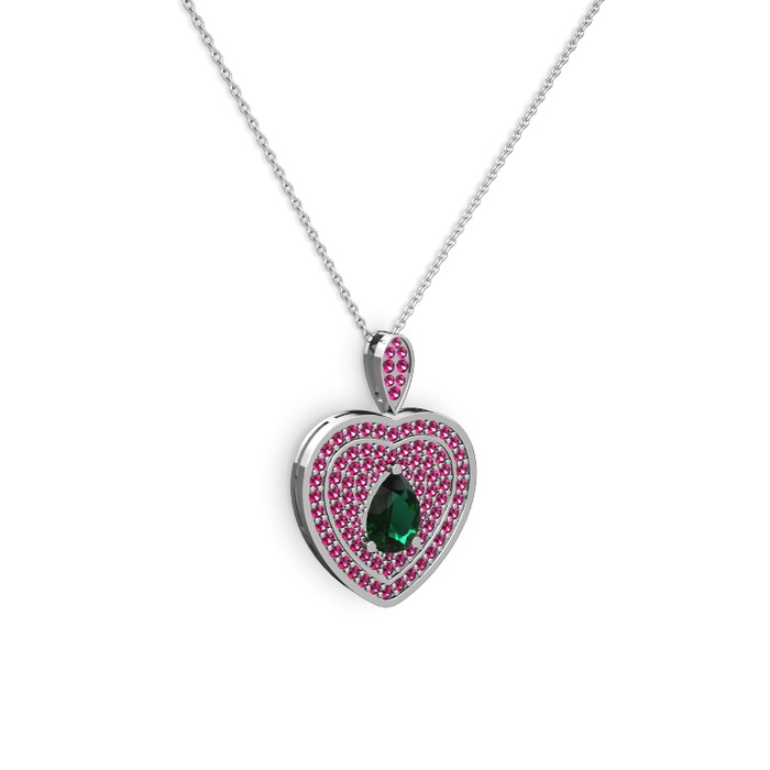 Yeşil kuvars ve rodolit garnet 14 ayar beyaz altın kolye (40 cm beyaz altın rolo zincir)