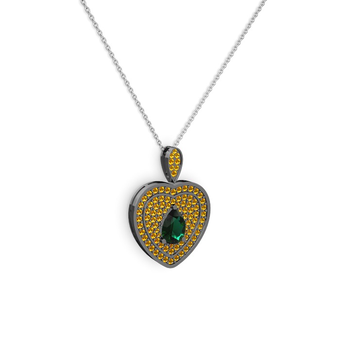 Yeşil kuvars ve sitrin 925 ayar siyah rodyum kaplama gümüş kolye (40 cm beyaz altın rolo zincir)