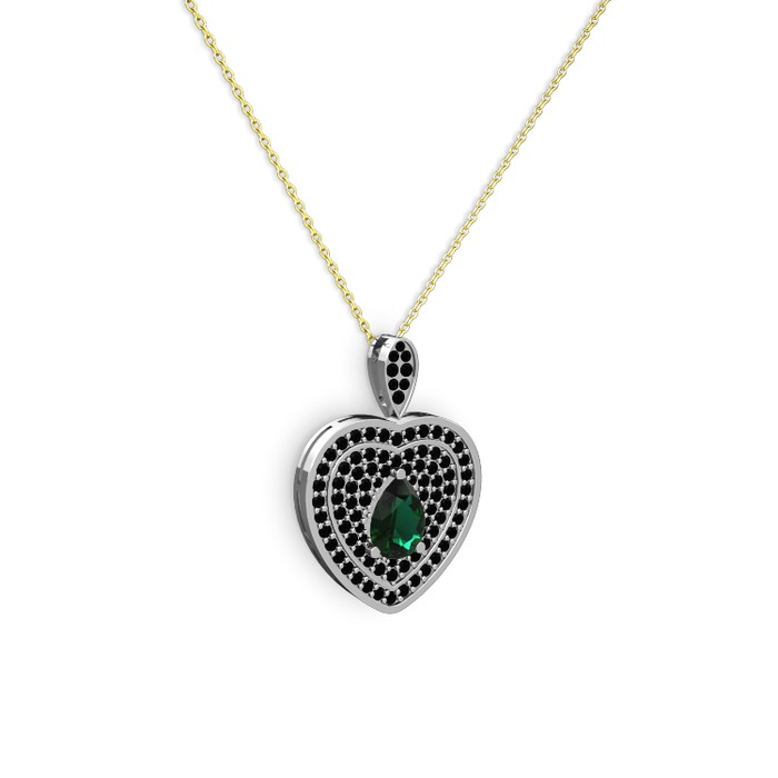Yeşil kuvars ve siyah zirkon 18 ayar beyaz altın kolye (40 cm gümüş rolo zincir)