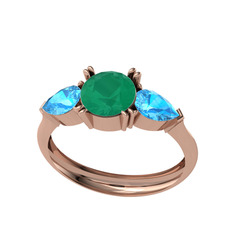 Kök zümrüt, dumanlı kuvars ve akuamarin 8 ayar rose altın yüzük
