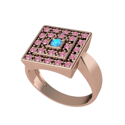 Akuamarin ve pembe kuvars 18 ayar rose altın yüzük