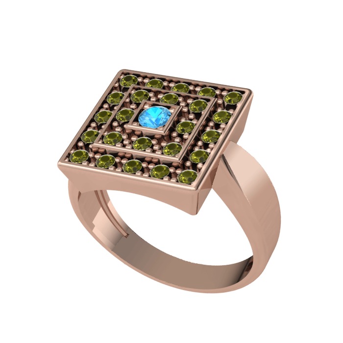 Akuamarin ve peridot 18 ayar rose altın yüzük