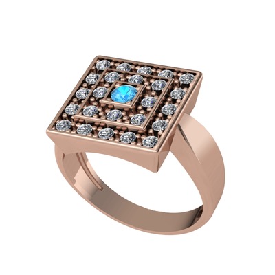 Akuamarin ve pırlanta 14 ayar rose altın yüzük (0.48 karat)