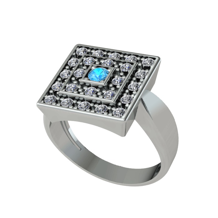 Akuamarin ve pırlanta 8 ayar beyaz altın yüzük (0.48 karat)