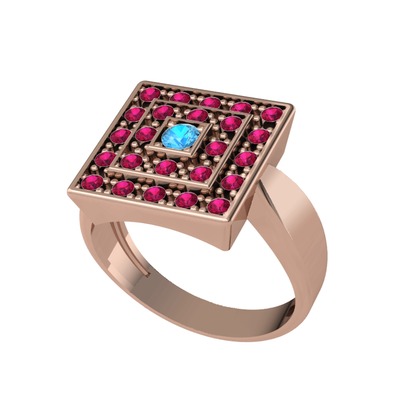 Akuamarin ve rodolit garnet 18 ayar rose altın yüzük