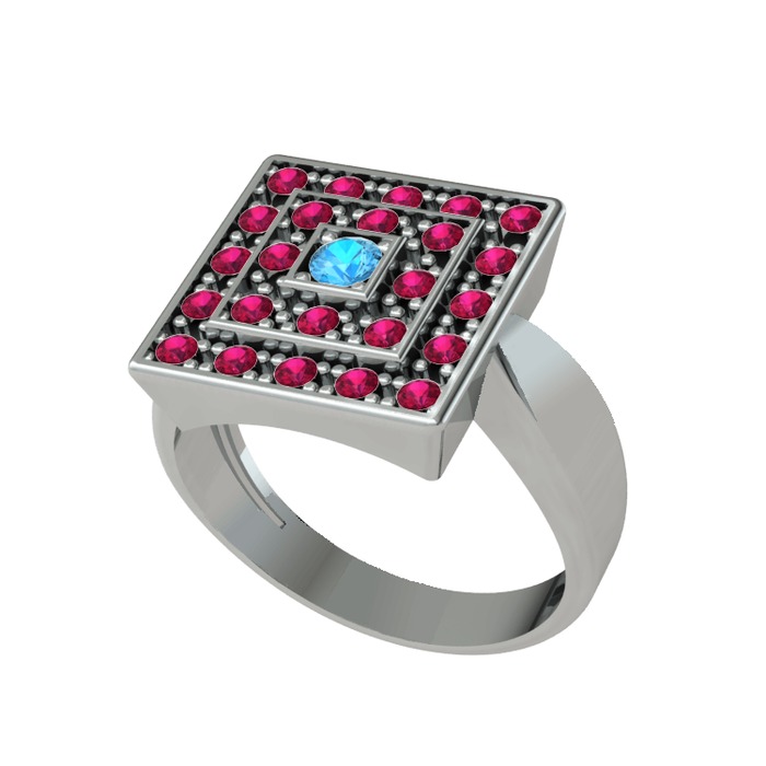 Akuamarin ve rodolit garnet 8 ayar beyaz altın yüzük
