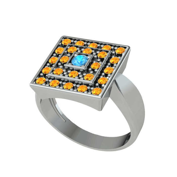 Akuamarin ve sitrin 14 ayar beyaz altın yüzük