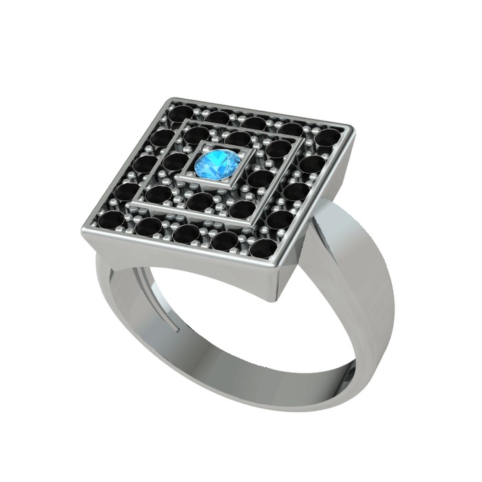 Akuamarin ve siyah zirkon 14 ayar beyaz altın yüzük