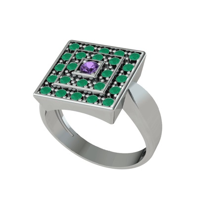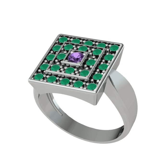 Ametist ve kök zümrüt 14 ayar beyaz altın yüzük
