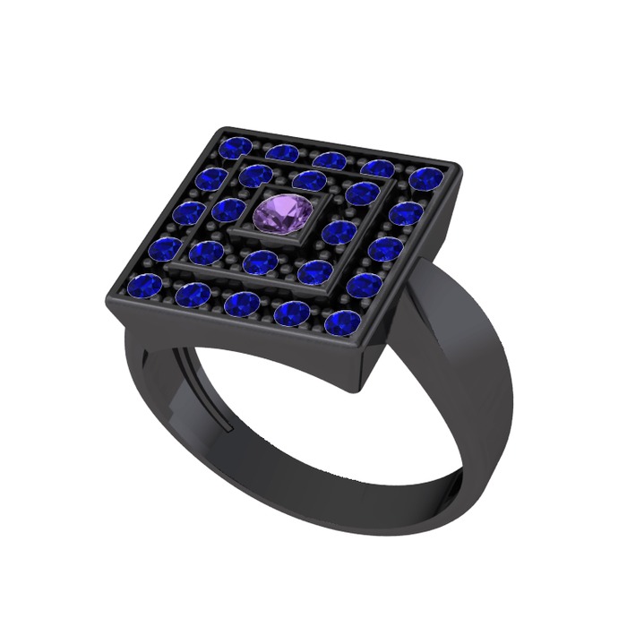 Ametist ve lab safir 925 ayar siyah rodyum kaplama gümüş yüzük