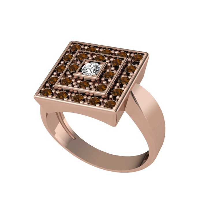 Beyaz zirkon ve dumanlı kuvars 18 ayar rose altın yüzük